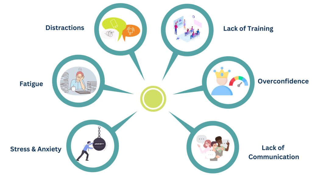Hyppige afbrydelser og forstyrrelser er en anden stor fjende. En sygeplejerske, der forbereder medicin, og som bliver afbrudt flere gange, har en markant øget risiko for at begå en fejl. Endelig kan en hierarkisk kultur, hvor yngre medarbejdere eller andre faggrupper ikke føler sig trygge ved at stille spørgsmål eller påpege potentielle fejl over for en erfaren overlæge, skabe farlige blinde vinkler. At skabe en psykologisk tryg kultur, hvor alle stemmer bliver hørt, er derfor en forudsætning for en robust situationsbevidsthed på tværs af hele teamet.