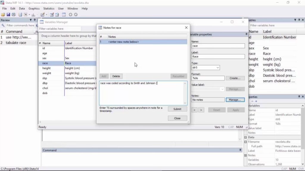 Lad os se, hvordan vi kan bruge dette til at opsummere flere variable fra vores NHANES II-datasæt uden at skulle skrive summarize-kommandoen for hver enkelt.