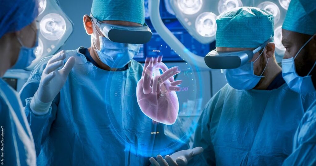 Augmented Reality, eller forstærket virkelighed, fungerer ved at overlejre digitale informationer oven på den virkelige verden. Forestil dig en kirurg, der bærer et par smarte briller under en operation. Gennem disse briller kan kirurgen se patienten på operationsbordet som normalt, men samtidig projiceres et 3D-billede af patientens anatomi – for eksempel fra en CT- eller MR-scanning – direkte oven på kroppen. Det er som at have et indbygget røntgensyn. Kirurgen kan se knogler, blodkar og nerver i realtid uden at skulle flytte blikket til en ekstern skærm. Dette giver en hidtil uset præcision, da man kan navigere med millimeter-nøjagtighed og undgå kritiske strukturer. AR er et værktøj, der assisterer kirurgen *under* selve operationen.
