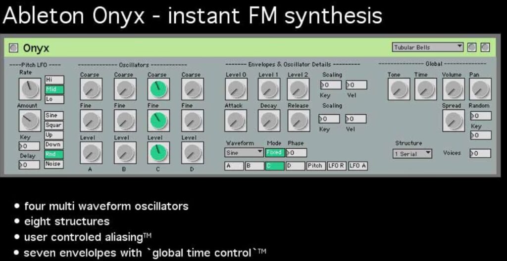 Målet var klart og ambitiøst: at skabe et instrument, der var let for CPU'en, tilbød en enorm sonisk palet og – vigtigst af alt – var sjovt og intuitivt at programmere. Inspirationen kom fra klassiske hardware-synths, især 4-operator FM-synthesizere som Yamaha DX27. Henke så potentialet i at tage den komplekse verden af FM-syntese og gøre den mere tilgængelig uden at ofre dybden. Den første prototype blev udviklet i Max/MSP under kodenavnet "Onyx", og den lagde grundstenen for et instrument, der skulle definere lyden af utallige elektroniske tracks i de kommende år.
