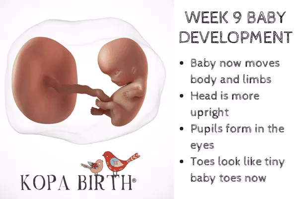 Mens du kæmper med symptomerne, sker der en utrolig udvikling inde i dig. I uge 9 er din baby ikke længere et embryo, men kaldes nu et foster. Den er på størrelse med en vindrue eller en oliven, cirka 2-3 cm lang. De mest kritiske udviklingsfaser er ved at være overstået, og nu handler det primært om vækst og finpudsning af organer og systemer.