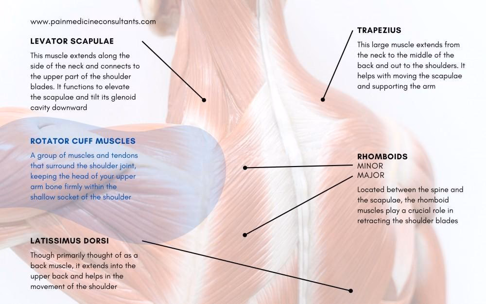 Øvelser, der styrker musklerne mellem skulderbladene (rhomboids og trapezius) og strækker brystmusklerne, er ofte gavnlige. Eksempler er "rows" med elastik og "wall slides". Det er dog vigtigt at få en korrekt diagnose først, da forkerte øvelser kan forværre visse tilstande. Konsulter altid en læge eller fysioterapeut for at få et skræddersyet øvelsesprogram.