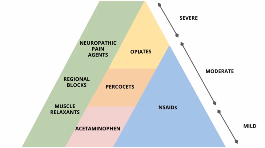 Når ikke-farmakologiske metoder ikke er tilstrækkelige, anvendes medicin. Tilgangen er ofte trinvis, kendt som "smerte-stigen", hvor man starter med de mildeste præparater og eskalerer efter behov. Målet er at bruge en multimodal tilgang, der rammer forskellige smertereceptorer for at opnå maksimal effekt med minimale bivirkninger.