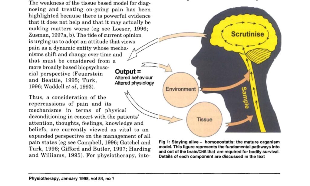 Fysioterapeuten Louis Gifford var en af de store formidlere af BPS-modellen. I 1998 introducerede han 'The Mature Organism Model', som på en pædagogisk måde forklarer, hvordan hjernen fungerer som en central processor. Han understregede, at smerte er et *output* fra hjernen, ikke et *input* fra kroppen.
