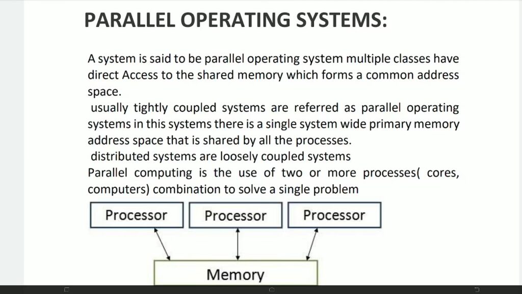 Et parallelt system, ofte kaldet et tætkoblet system, er designet til at accelerere udførelsen af et enkelt program ved at opdele det i mindre fragmenter og behandle disse fragmenter samtidigt. Forestil dig et enkelt, ekstremt kraftfuldt computerkabinet, der indeholder flere processorer (CPU'er) eller processorkerner. Alle disse processorer arbejder sammen om den samme opgave. Det afgørende kendetegn ved et parallelt system er, at alle processorerne deler de samme computerressourcer. De har adgang til en fælles hukommelse (RAM), et fælles ur til synkronisering og de samme perifere enheder som harddiske og netværkskort. Kommunikation mellem processorerne er ekstremt hurtig, da den foregår internt i computeren via en højhastighedsbus.