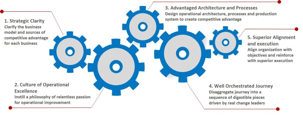- Ledelsesengagement: Sikre, at ledere på alle niveauer er fuldt engagerede i at drive og opretholde operationel excellence.