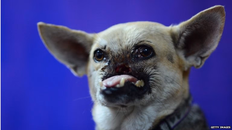 | Udseende | En almindelig filippinsk blandingshund (aspin). | Manglende overkæbe og snude, med et markant ar i ansigtet. |