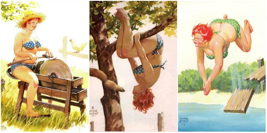 Duane Bryers skabte omkring 250 forskellige illustrationer af Hilda i løbet af de næsten 30 år, han tegnede hende til kalendere.