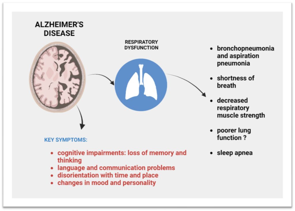 Efterhånden som Alzheimer ødelægger de dele af hjernen, der kontrollerer muskelfunktioner, svækkes den komplekse synkerefleks. Dette betyder, at mad, drikke, spyt eller endda mavesyre kan glide ned i luftrøret i stedet for spiserøret. Vores mund og svælg indeholder naturligt mange bakterier. Når disse bakterier føres med madpartikler eller væske dybt ned i lungerne, finder de et varmt og fugtigt miljø, hvor de kan formere sig og forårsage en alvorlig infektion. Da immunforsvaret hos en person med fremskreden Alzheimer ofte er svækket på grund af generel dårlig helbredstilstand, underernæring og immobilitet, kan kroppen have svært ved at bekæmpe infektionen, hvilket ofte gør den fatal.