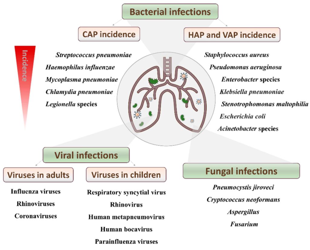 - Underliggende sygdomme: Tilstande som cystisk fibrose er forbundet med specifikke bakterier som Pseudomonas aeruginosa og Staphylococcus aureus. Generelt øger enhver form for immunsvækkelse risikoen.