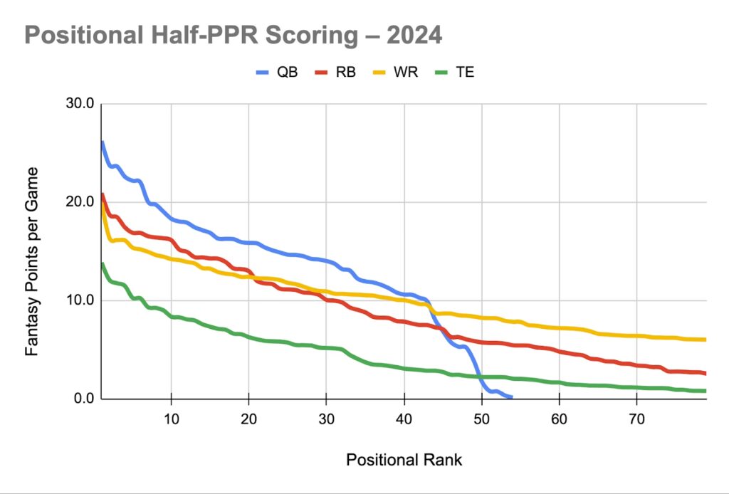 Den største justering, du skal foretage, når du skifter fra standard til PPR, er din evaluering af de forskellige spillerpositioner. Lad os bryde det ned.