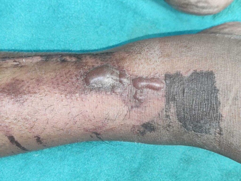 2. Applicering: Små dråber af forskellige testopløsninger placeres på huden, typisk på underarmen. For en povidonundersøgelse vil dette inkludere: