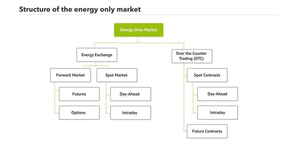 Fysisk handel involverer den faktiske levering af elektricitet eller gas fra sælger til køber. Finansiel handel, derimod, handler om papirkontrakter som futures og optioner. Her handles der ikke med selve energien, men med kontrakter, hvis værdi er baseret på energiprisen. Disse bruges ofte til at afdække (hedge) risiko mod fremtidige prisudsving.
