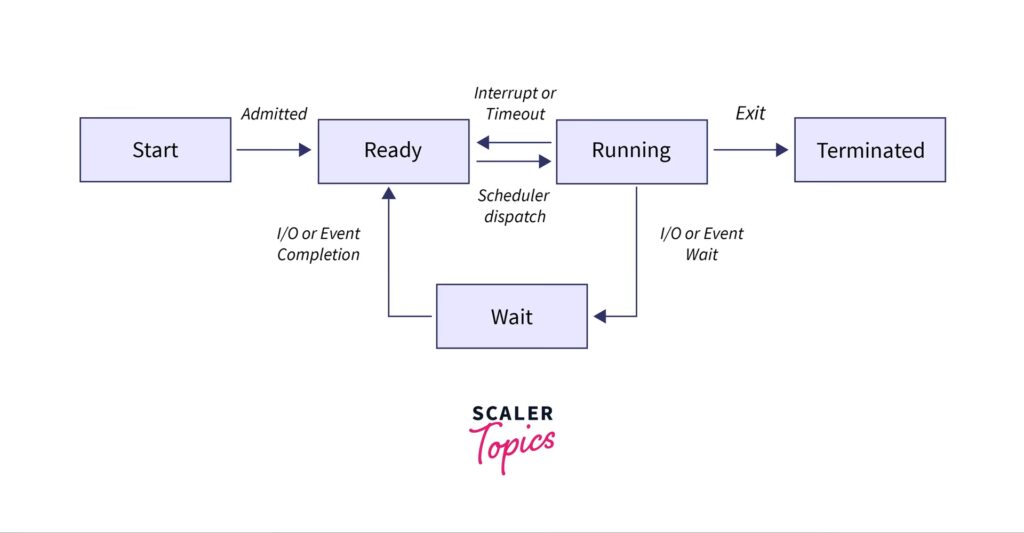 - Start (New): Processen er ved at blive oprettet. Operativsystemet har allokeret ressourcer og oprettet en PCB.