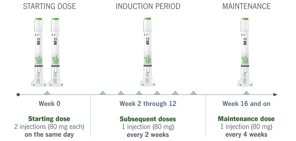 Behandlingsfrekvensen varierer fra lægemiddel til lægemiddel, fra hver uge til kun hver 12. uge efter en opstartsperiode.