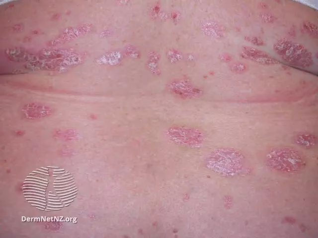 - Placering: Psoriasis findes typisk på strækkesider af albuer og knæ samt i hovedbunden. SCLE-læsioner optræder oftest på soludsatte områder som overkrop, arme og underarme.
