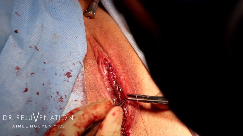 Operationen udføres typisk under fuld narkose, men kan i nogle tilfælde (især ved mindre opstramninger) udføres i lokalbedøvelse med sedation. Varigheden afhænger af procedurens kompleksitet, fra omkring en time for en simpel opstramning til flere timer for en neovagina-konstruktion.