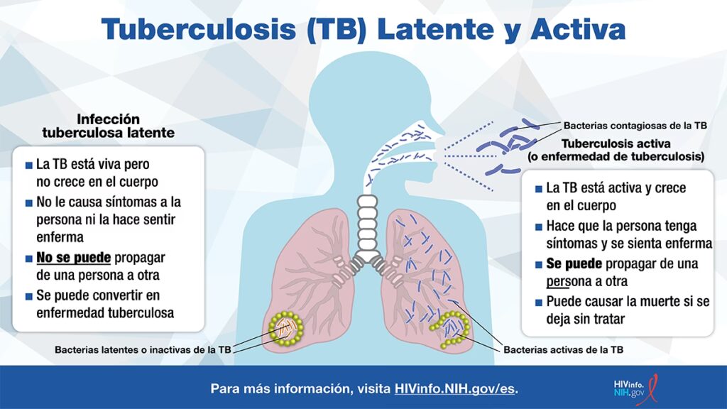 Hos de fleste mennesker, der indånder TB-bakterier, er kroppens immunsystem i stand til at bekæmpe bakterierne og forhindre dem i at formere sig. Bakterierne forbliver i kroppen i en inaktiv tilstand. Dette kaldes latent tuberkulose. En person med latent TB: