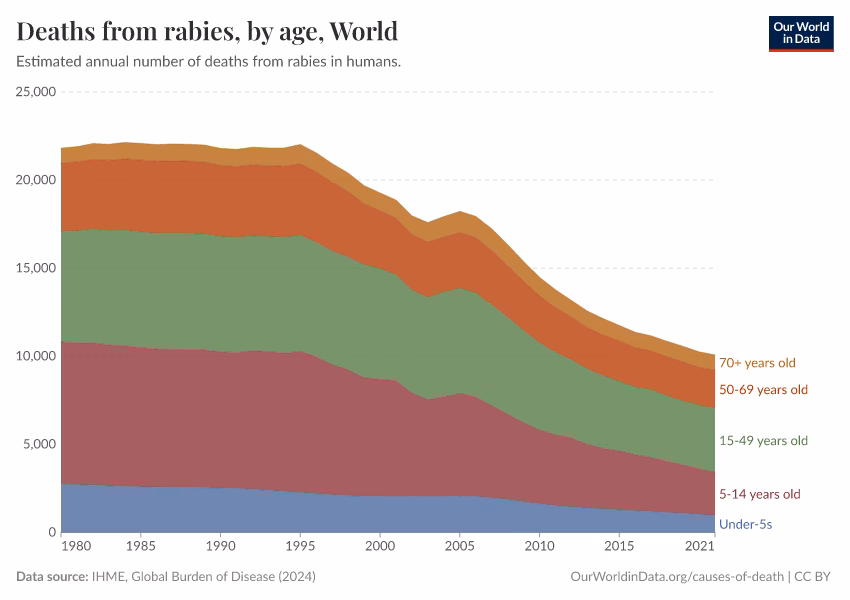 - Personer med hyppig kontakt til flagermus: Dette inkluderer frivillige på dyreinternater eller forskere. Anbefalingen er en primær vaccinationsserie efterfulgt af en booster efter et år. Derefter kan man enten følge den tidsplan, der er angivet i tabellen ovenfor, eller modtage regelmæssige boostere hvert 3. til 5. år.