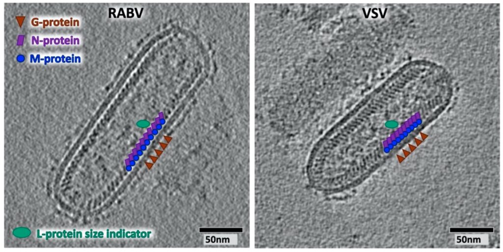 Nej, M-proteiner findes i hele rhabdovirus-familien, som rabiesvirus tilhører. Deres grundlæggende funktioner er ofte ens, men de specifikke interaktioner med værtscellens proteiner kan variere og bidrage til de forskellige sygdomme, viraene forårsager.