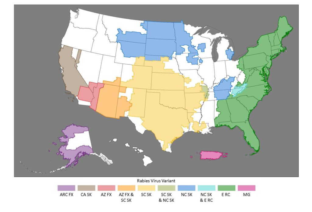 Eksempel på Rabiesfordeling i Dyrebestande (USA)