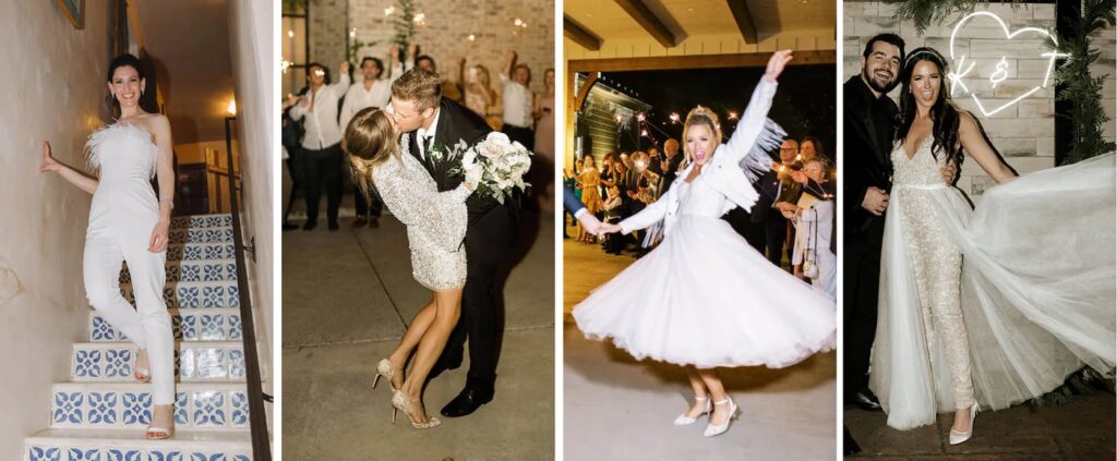 - Jumpsuit: Et buksedragt er det ultimative power-move. Det er chikt, komfortabelt og utroligt stilfuldt. Perfekt til den moderne brud.