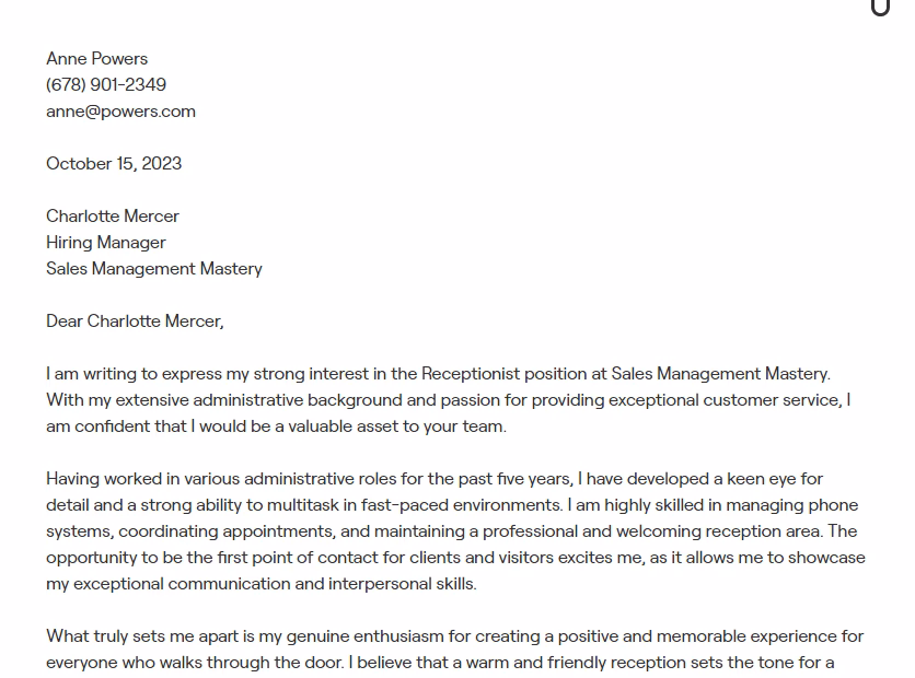 Hvor lang skal en ansøgning som receptionist være?