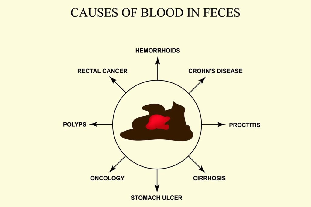 En række tilstande kan føre til mave-tarm-blødning, som viser sig som rødt blod i afføringen.