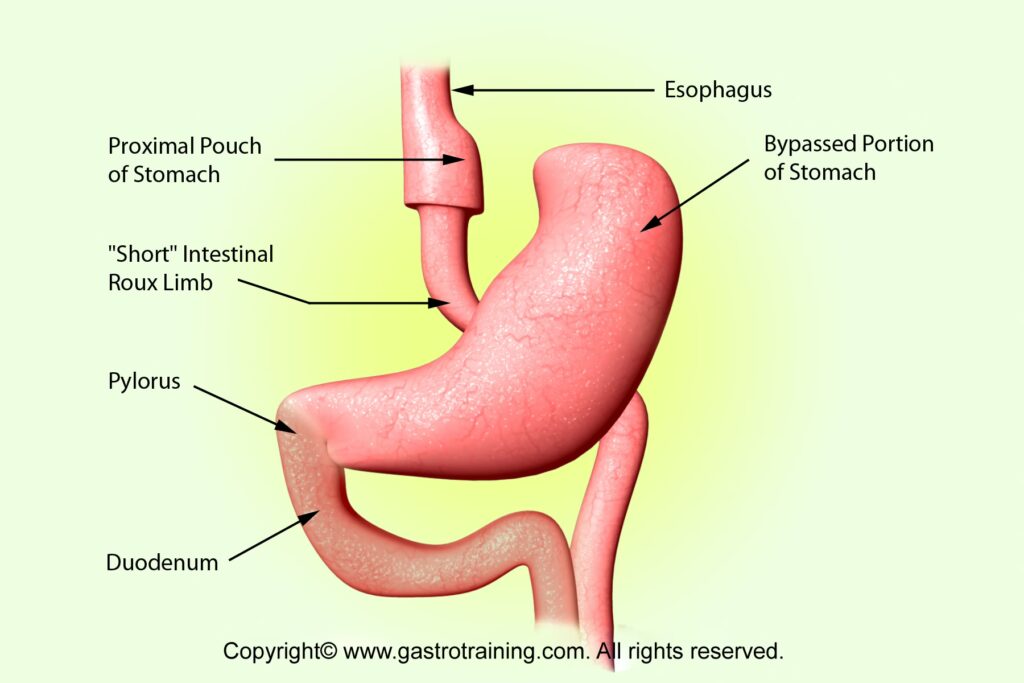For at forstå bivirkningerne er det vigtigt at forstå selve operationen. En RYGB-operation gør to primære ting: For det første skaber kirurgen en meget lille mavesæk (en 'pouch') ud af den øverste del af maven. Dette begrænser mængden af mad, man kan spise ad gangen (restriktion). For det andet bliver denne nye, lille mavesæk forbundet direkte til en lavere del af tyndtarmen, hvorved man "bypasser" resten af maven og den første del af tyndtarmen (duodenum og en del af jejunum). Denne omledning betyder, at maden ikke blandes med mavesyre og fordøjelsesenzymer fra bugspytkirtlen og galden på samme måde eller lige så hurtigt som før. Denne ændring i fordøjelsesprocessen er det, der fører til malabsorption – en nedsat optagelse af næringsstoffer og kalorier.