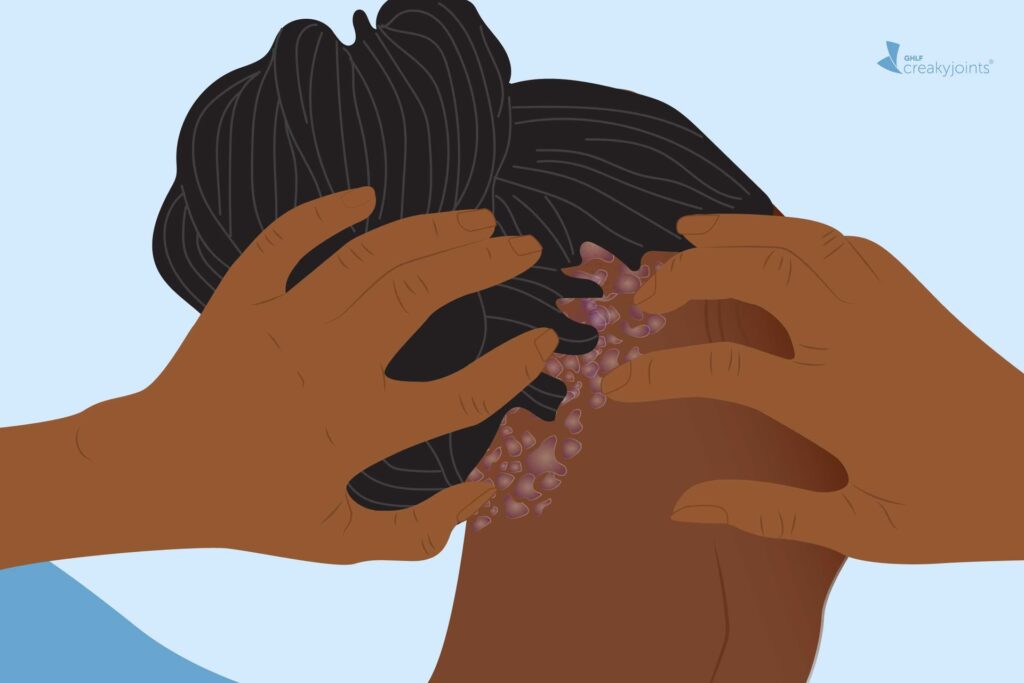 - Midlertidigt hårtab: Selve sygdommen forårsager ikke hårtab, men kraftig kradsning eller hårdhændet fjernelse af plaques kan føre til, at håret knækker eller falder af. Heldigvis vokser håret typisk ud igen, når tilstanden er under kontrol.