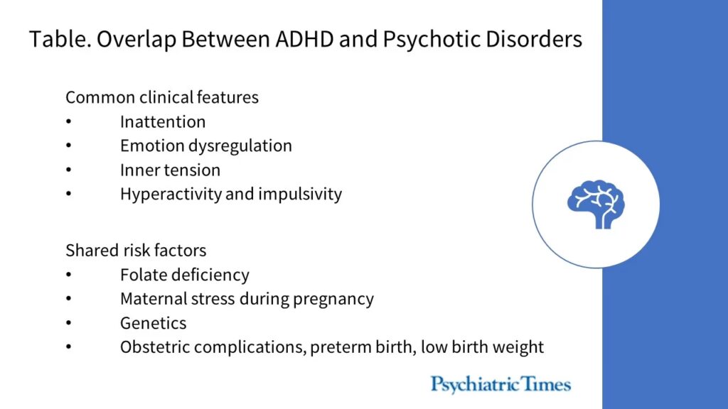 En stor klinisk udfordring opstår, når en person med skizofreni også har ADHD. Der er en udbredt bekymring for, at behandling med stimulanser kan forværre psykotiske symptomer. Dette skyldes den tilsyneladende modsatrettede virkning af medicinen: antipsykotika blokerer dopamin, mens stimulanser øger det. Dog tyder nyere forskning på, at terapeutiske doser af stimulanser kan virke anderledes end høje doser og potentielt endda have en gavnlig effekt ved også at reducere den type dopaminsignalering, der er forbundet med psykose. Uden klare retningslinjer skal læger gå forsigtigt frem. Den generelle anbefaling er at behandle psykosen først. Hvis ADHD-symptomer fortsætter efter stabilisering, kan man overveje non-stimulerende medicin eller en forsigtig afprøvning af stimulanser under tæt overvågning.