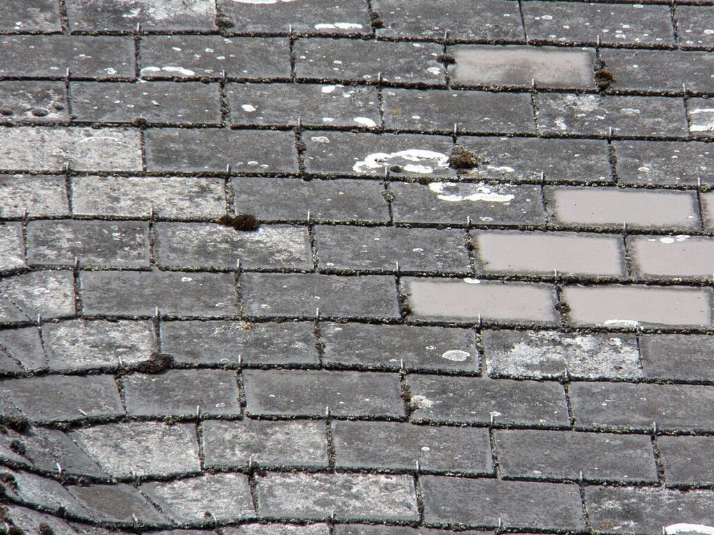 | Taget har mindre skader (revner, afskalning). | Kontakt en professionel for at vurdere, om reparation via indkapsling (forsegling) er en sikker mulighed. | Forsøg ikke selv at reparere det med almindelig fugemasse eller maling. |