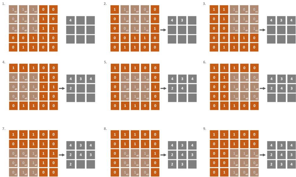 - En stride på 1: Her flytter vinduet sig kun én pixel ad gangen, både horisontalt og vertikalt. Dette er en meget grundig og detaljeret scanning. Det svarer til, at en patolog omhyggeligt undersøger en vævsprøve under et mikroskop millimeter for millimeter. Denne metode er ideel til at fange meget fine detaljer, men den er også mere beregningskrævende og langsommere.