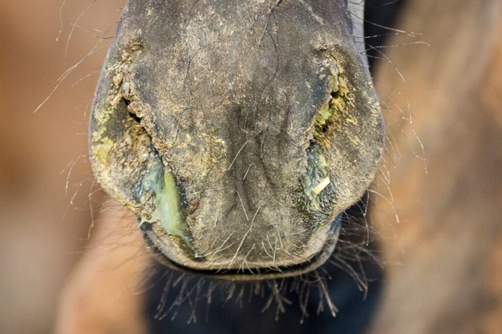 - Direkte kontakt: Den mest almindelige smittevej er fra hest til hest. Når en smittet hest hoster eller puster, spredes bakterieholdige dråber i luften, som andre heste kan indånde. Kontakt mule-til-mule er også en effektiv måde at overføre infektionen på.