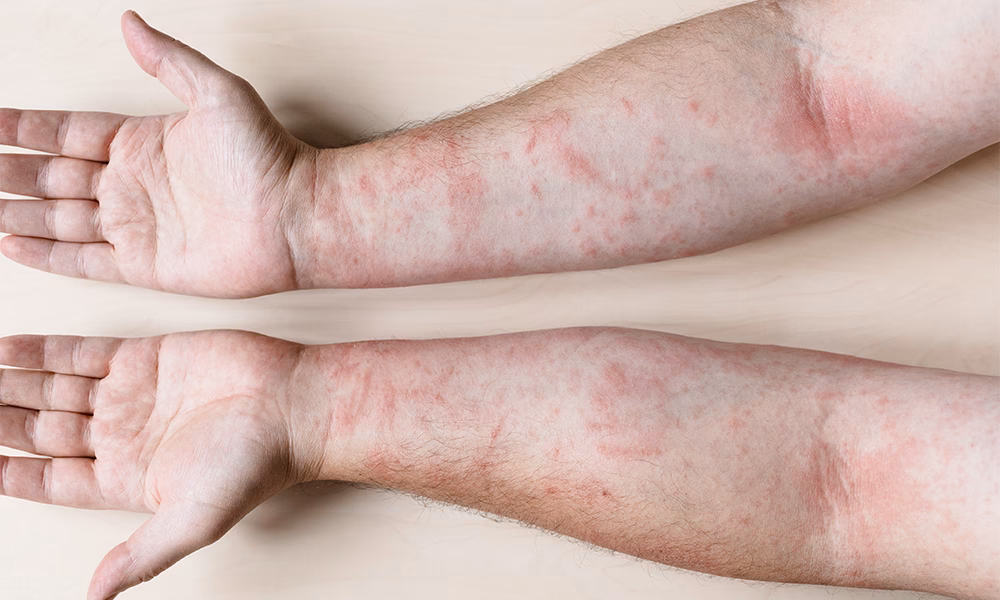 • Rødt og kløende udslæt: Dette er ofte det første tegn. Huden bliver rød, irriteret og kan klø intenst.