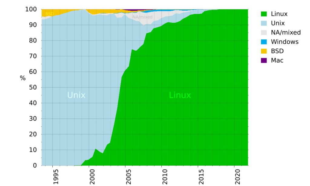 For 20 år siden var Unix det dominerende styresystem på supercomputere. Men Linux har gradvist overtaget fuldstændigt. Årsagen ligger primært i Linux' natur som open-source. Supercomputere er specialbyggede maskiner designet til meget specifikke formål, f.eks. at modellere spredningen af en pandemi eller at analysere proteinstrukturer. Dette kræver et styresystem, der kan skræddersys og optimeres ned til mindste detalje.
