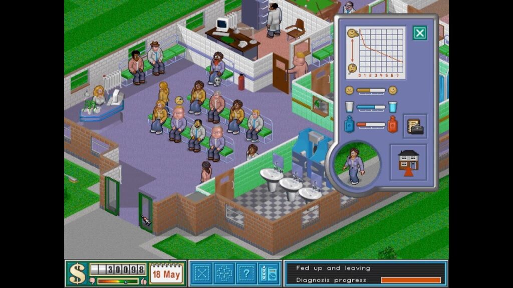 Effektivitet handler om at spare sekunder, og i Theme Hospital kan disse sekunder hurtigt løbe op i timer over et helt spil. To rum er særligt vigtige at optimere for at maksimere patientgennemstrømningen og indtjeningen.