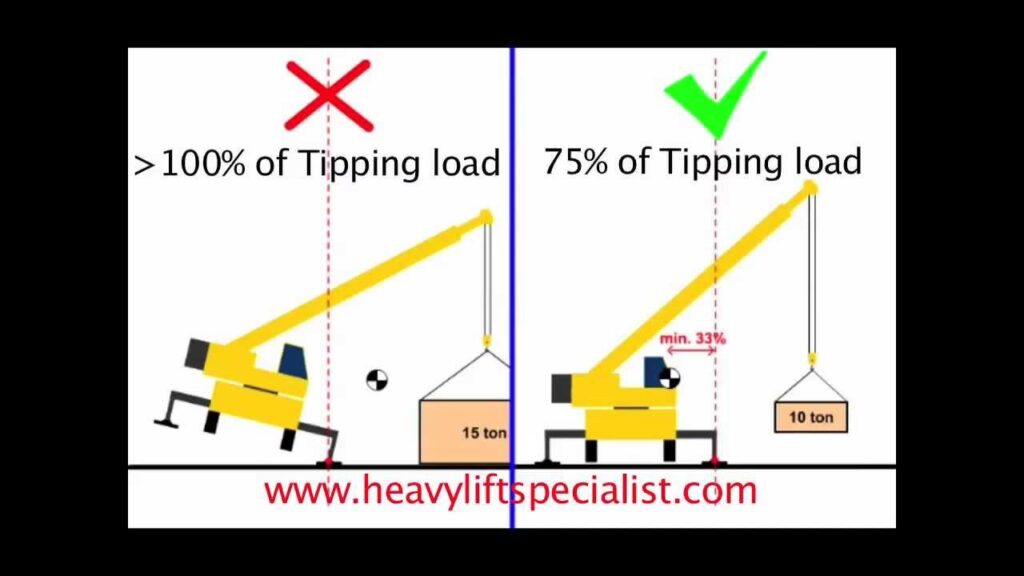 - Tippelast: Dette er den teoretiske vægt, der, når den løftes til en bestemt position, vil få maskinens bagende til at løfte sig fra jorden. Det er det punkt, hvor maskinen begynder at tippe forover. For eksempel kan en maskine have en tippelast på 7.400 pund.