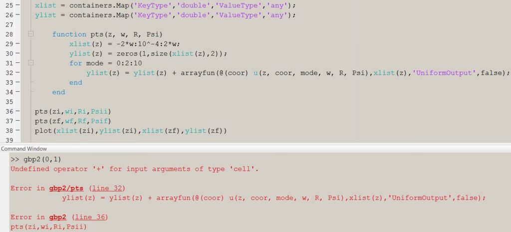 Dette er en anden almindelig fejl, men den er ikke relateret til datatyper på samme måde. Denne fejl betyder, at MATLAB ikke kan finde den funktion, du prøver at kalde (i dette tilfælde en funktion ved navn 'F'). Det skyldes typisk en af to ting: enten har du stavet funktionens navn forkert, eller også ligger mappen, der indeholder din funktions .m-fil, ikke i MATLABs sti (path). Du kan tilføje en mappe til stien med kommandoen addpath('mappenavn').