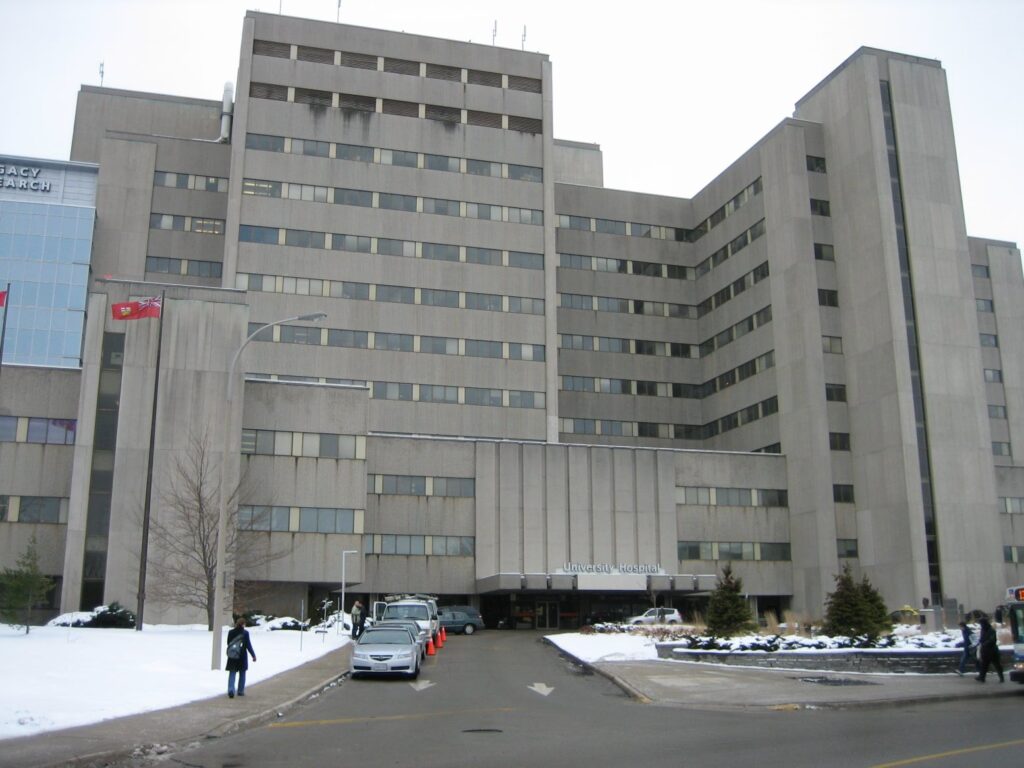For dem, der benytter offentlig transport, kan London Transit Commissions hjemmeside give de mest opdaterede oplysninger om busruter og tidsplaner. Følgende buslinjer kører direkte ind på Universitetshospitalets område:
