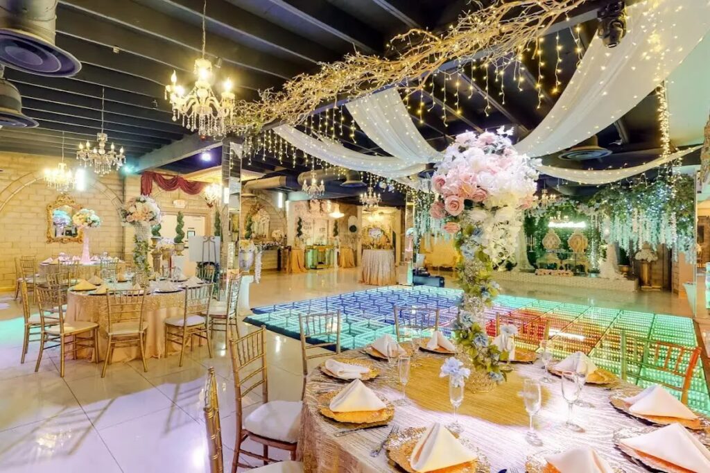 Dette sted er designet til den store, eventyrlige fejring. Med en storslået trappe, perfekt til en dramatisk entré, og en balsal med et dansegulv i brasiliansk kirsebærtræ, er Emerald at Queensridge indbegrebet af glamour. De tilbyder udendørs ceremonier i deres smukke gårdhave og kan huse op til 350 gæster.