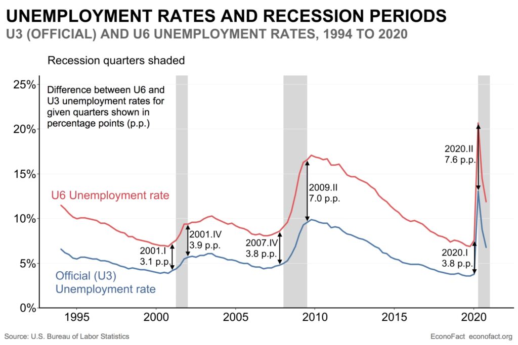 For at sætte alvoren af det nuværende fald i perspektiv, har økonomer som Kathryn Anne Edwards påpeget en skræmmende parallel. Faldet i ansættelsesraten, som vi har været vidne til de seneste 18 måneder, er i sin størrelsesorden sammenligneligt med det fald, man så under Den Store Recession efter finanskrisen i 2008. Dengang var faldet ledsaget af en massiv stigning i arbejdsløsheden.
