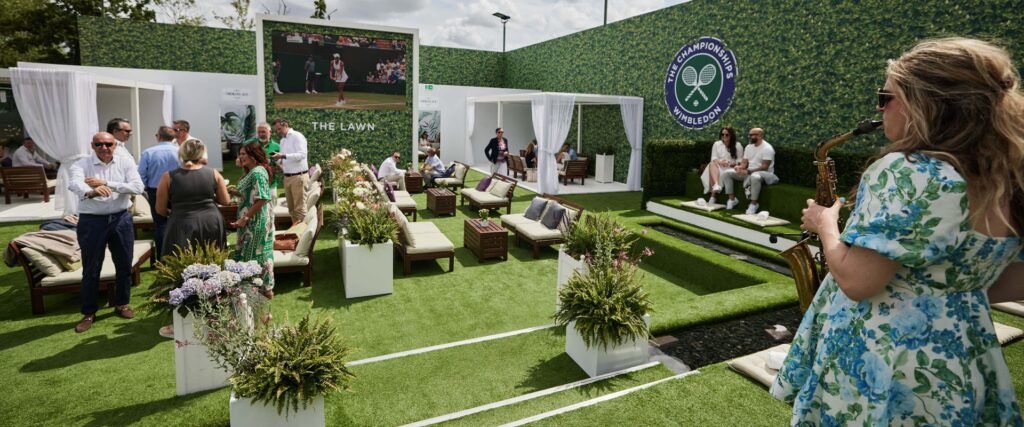 Official Wimbledon Hospitality at the Rosewater Pavilion. Beautifully landscaped gardens and subtle floral touchpoints.