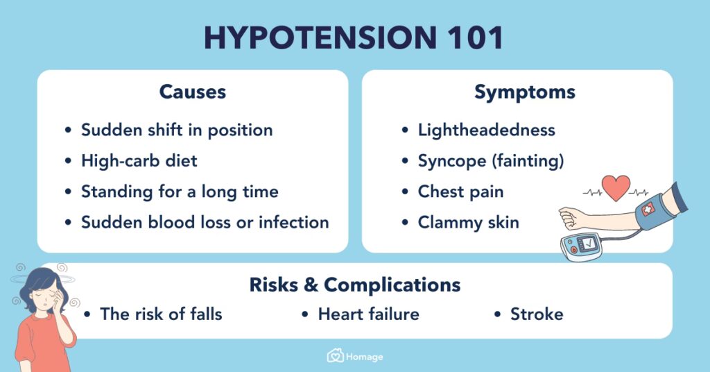 Generelt gælder det, at hvis du oplever gentagne episoder med symptomer på hypotension, selvom de er milde (som svimmelhed, når du rejser dig), bør du bestille en tid hos din læge for at blive undersøgt. Det er vigtigt at udelukke alvorlige årsager.